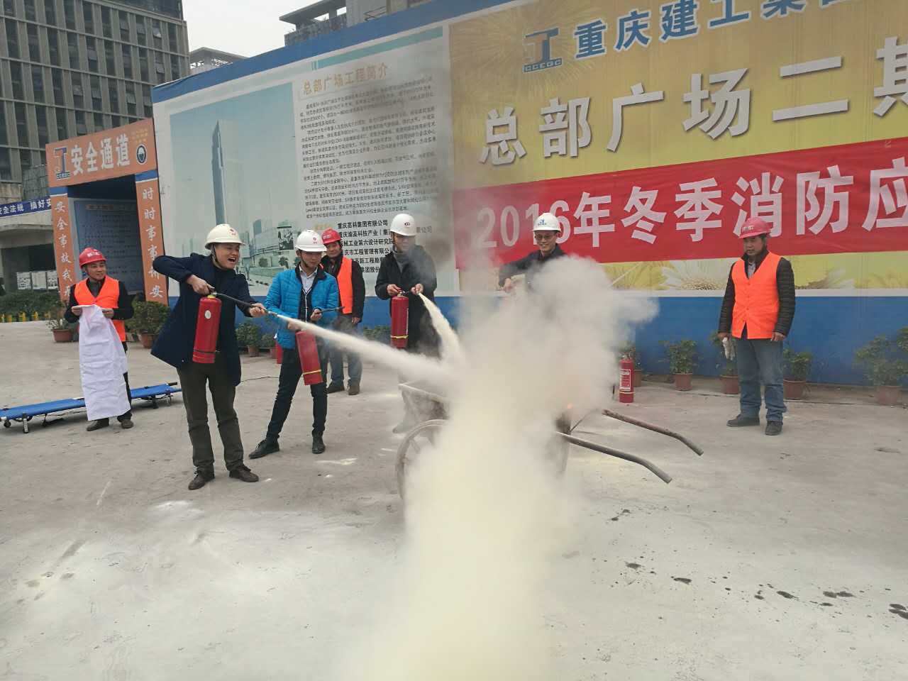 12月19日在高科STC项目现场,高科集团组织渝高公司、监理单位、建工集团及其他专业分包单位“开展2016年冬季消防应抢救援演练”。针对超高层建筑在施工历程中的宁静隐患,事前体例了应急预案,凭据预案组织各参建单位进行了消防应抢救援演练,着重对消防灭火器使用、火场救援、伤员救护等方面进行模拟演练,切实增强各参建单位在场人员宁静意识,确保项目宁静、保质、有序推进。???