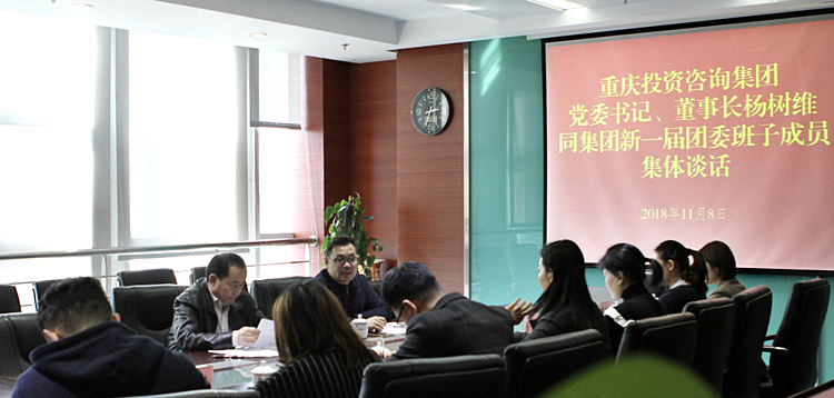 2018年11月8日下午,集团党委书记、董事长杨树维集团新一届团委委员集体谈话,党群事情部部长朱明主持座谈会。