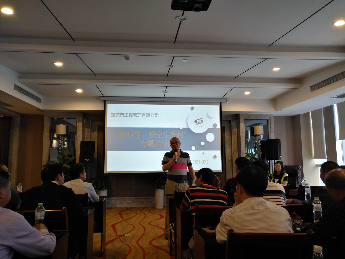 6月15日,我司在重庆咨询大厦B座集会室举办了2017年“宁静生产月”系列运动之落实企业宁静生产主体责任专题培训,培训由质量与宁静监管部(总师办)组织,外聘高级讲师,公司项目经理、总监理人生就是博师、总监理人生就是博师代表等90余名集中加入了本次培训。