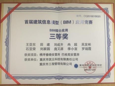 热烈祝贺公司BIM技术中心在2016年重庆首届建筑信息模型(BIM)应用竞赛中获奖